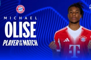 2球1助攻,欧冠官方:奥利塞当选拜仁6-1亚特兰大全场最佳