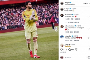 体育资讯3月15日讯 英超第30轮比赛,拉亚完成零封,帮助阿森纳主场2-0击败埃弗顿。