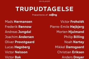 后卫:安诺森(富勒姆)、普罗夫斯加德(拉齐奥)、霍斯贝里(斯特拉斯堡)、维克托·尼尔森(维罗纳)、维克托·巴克(中日德兰)、亚历山大·巴(本菲卡)、梅勒(沃尔夫斯堡)