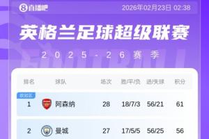 体育资讯2月23日讯 英超第27轮,热刺1-4阿森纳,此役过后枪手多赛一场(第31轮一场比赛提前进行,阿森纳2-2狼队),积分榜上的优势仍是5分。