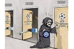 今日趣图:国米2-5被闪耀哥抬走,接下来是单回合就被踢5-2的尤文